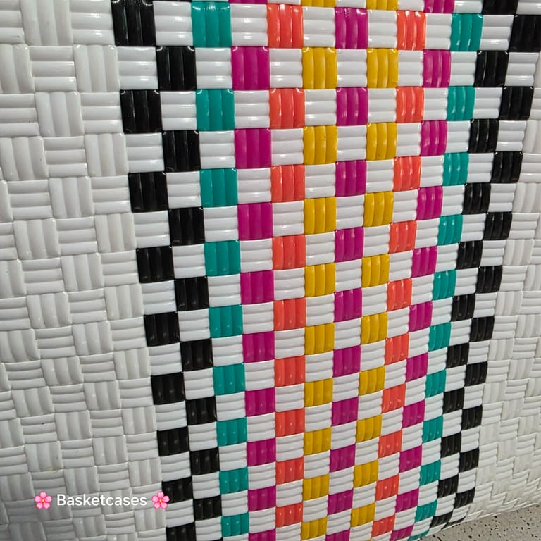 Introducing the Jali-bags from Basketcases Coffs Harbour: unique, handcrafted, and eco-friendly! Crafted with care from 100% recycled plastic, these bags are the perfect blend of style and sustainability. Featuring a secure closing clasp, the Jali-bags offer a reliable way to keep your belongings safe.